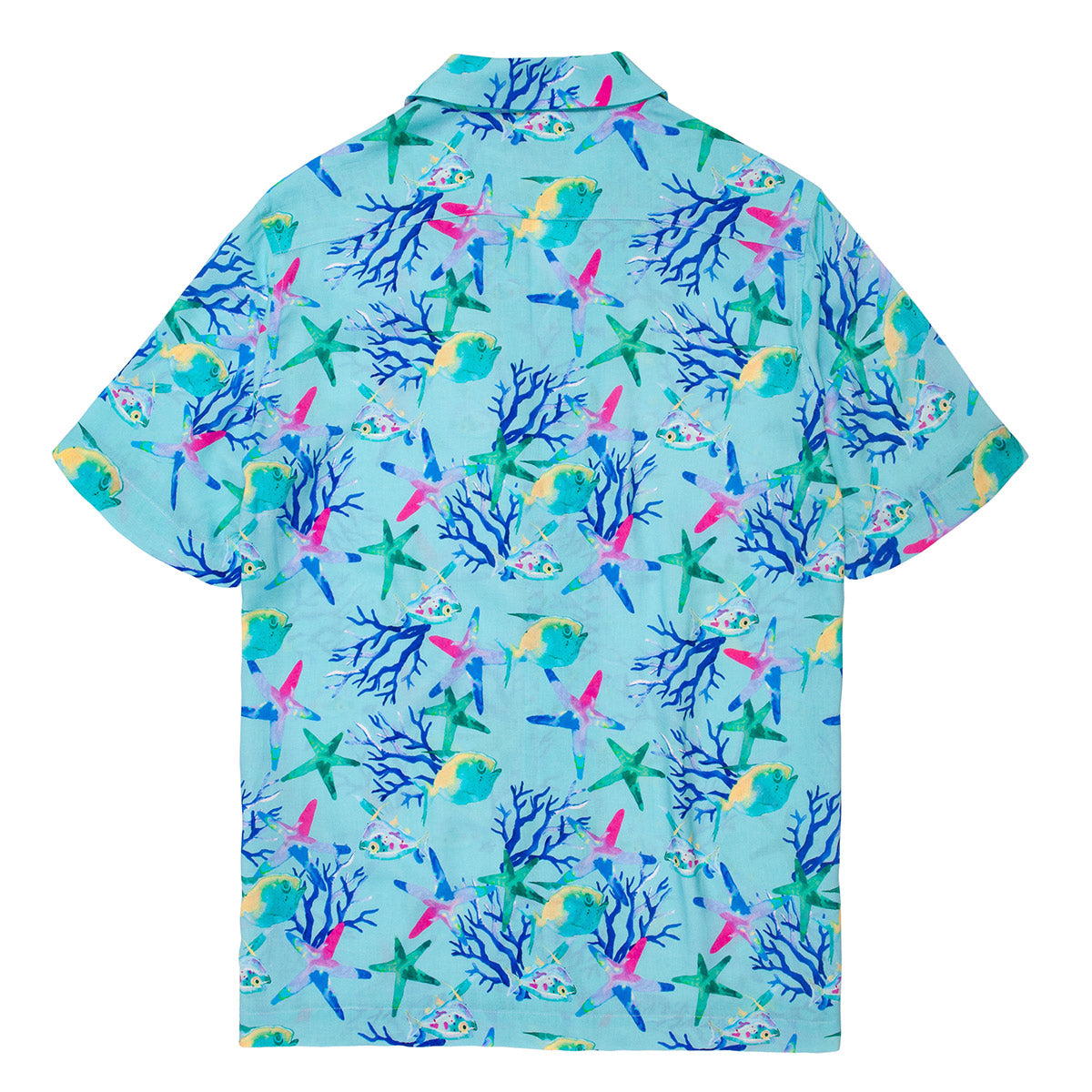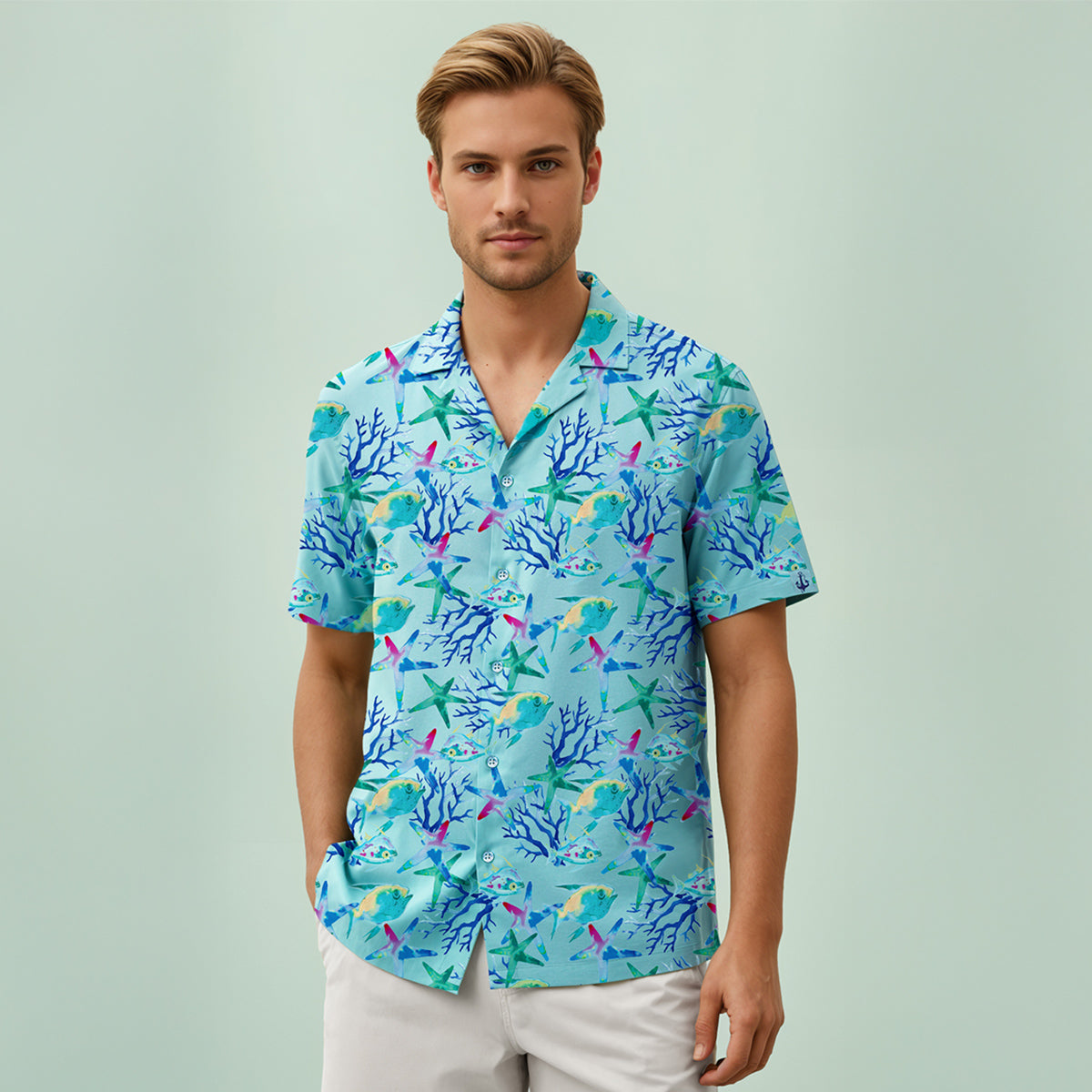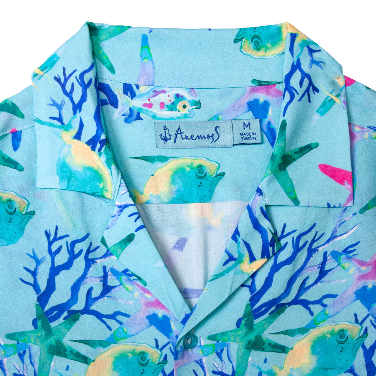 Anemoss Akvaryum Desenli %100 Viskon Yumuşak Nefes Alabilir Kumaşlı Erkek Gömlek