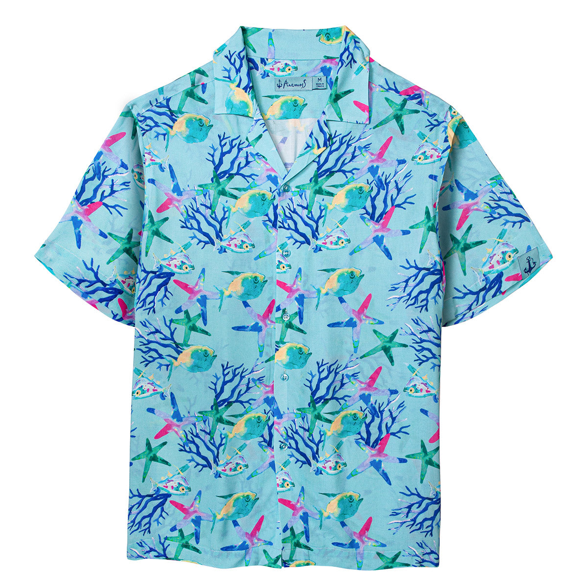 Plajdan festivallere, konserden günlük hayata kadar çok yönlü bir şekilde kullanılabilir. Anemoss’un %100 viskon kumaştan üretilmiş akvaryum desenli erkek gömleği, yaz mevsiminin enerjisini taşıyan canlı renkleri ve rahat kalıbıyla stilinizi öne çıkarır.