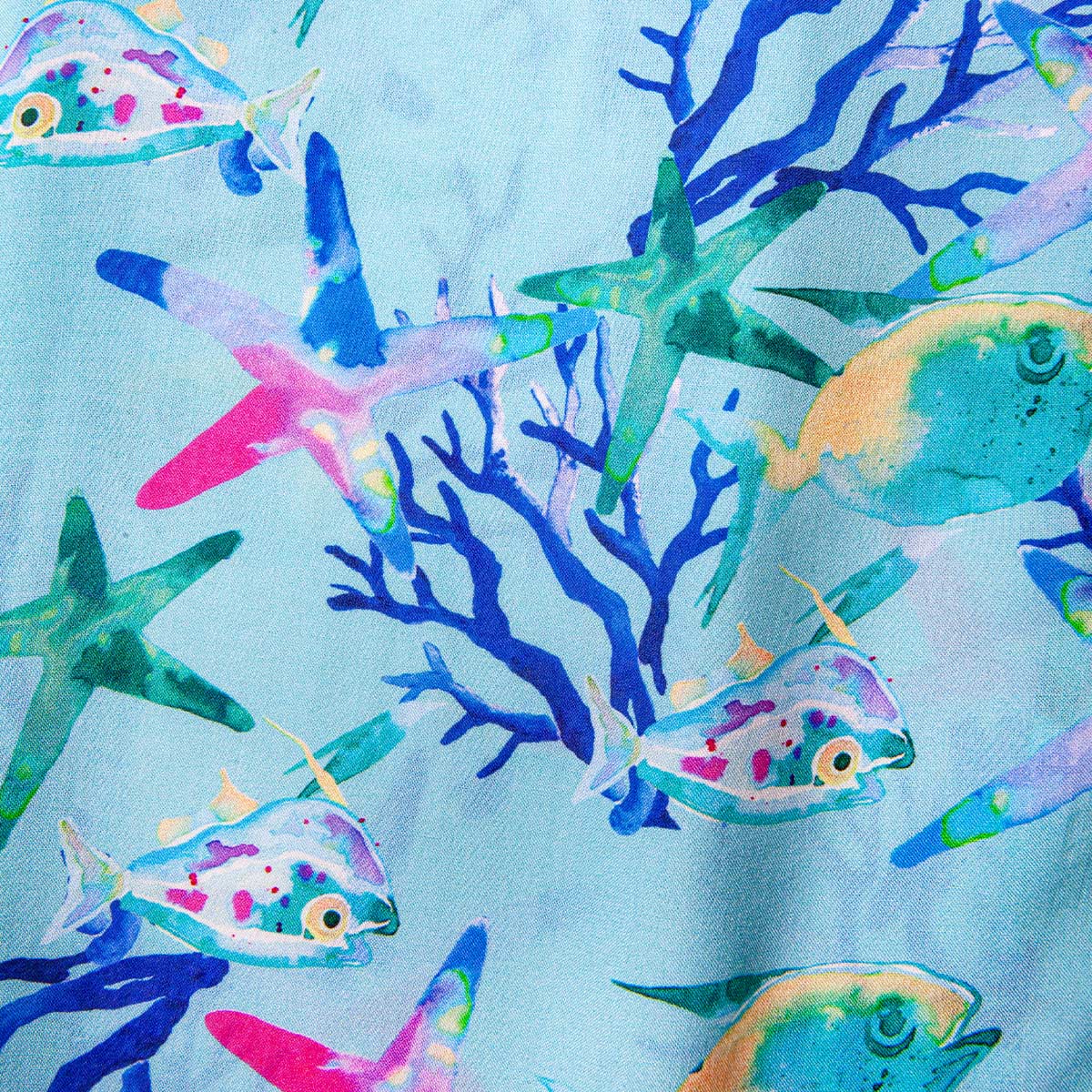 Plajdan festivallere, konserden günlük hayata kadar çok yönlü bir şekilde kullanılabilir. Anemoss’un %100 viskon kumaştan üretilmiş akvaryum desenli erkek gömleği, yaz mevsiminin enerjisini taşıyan canlı renkleri ve rahat kalıbıyla stilinizi öne çıkarır.