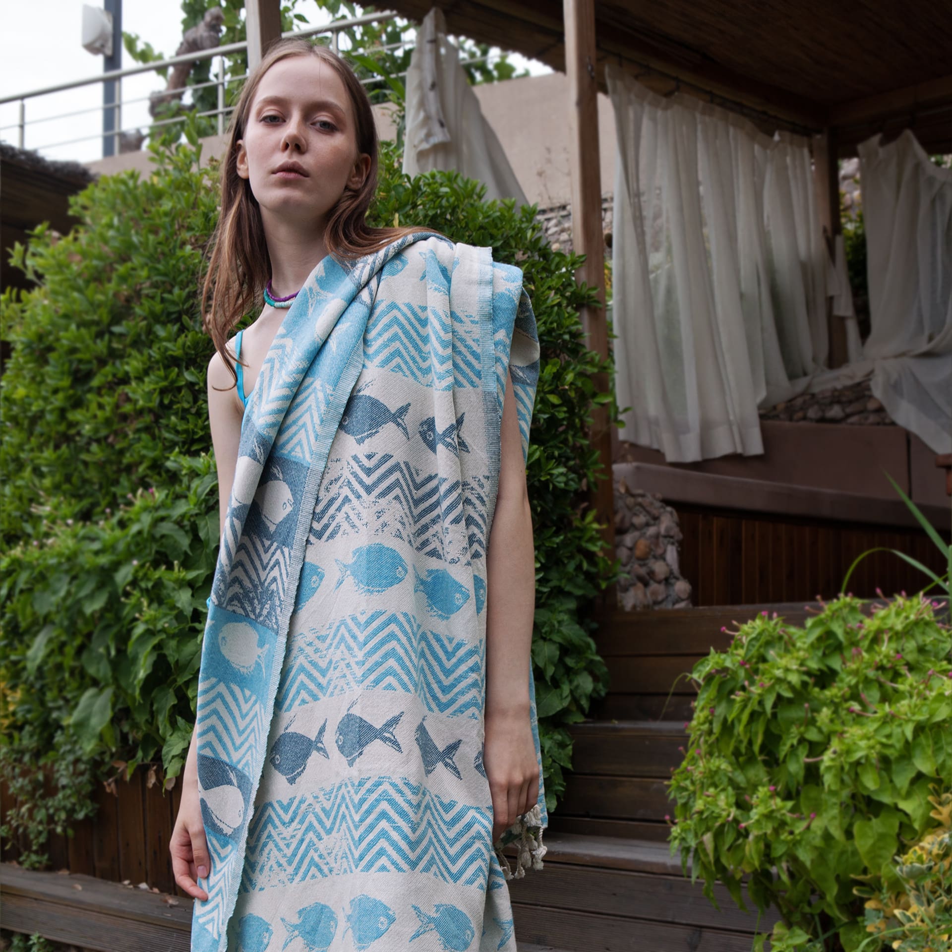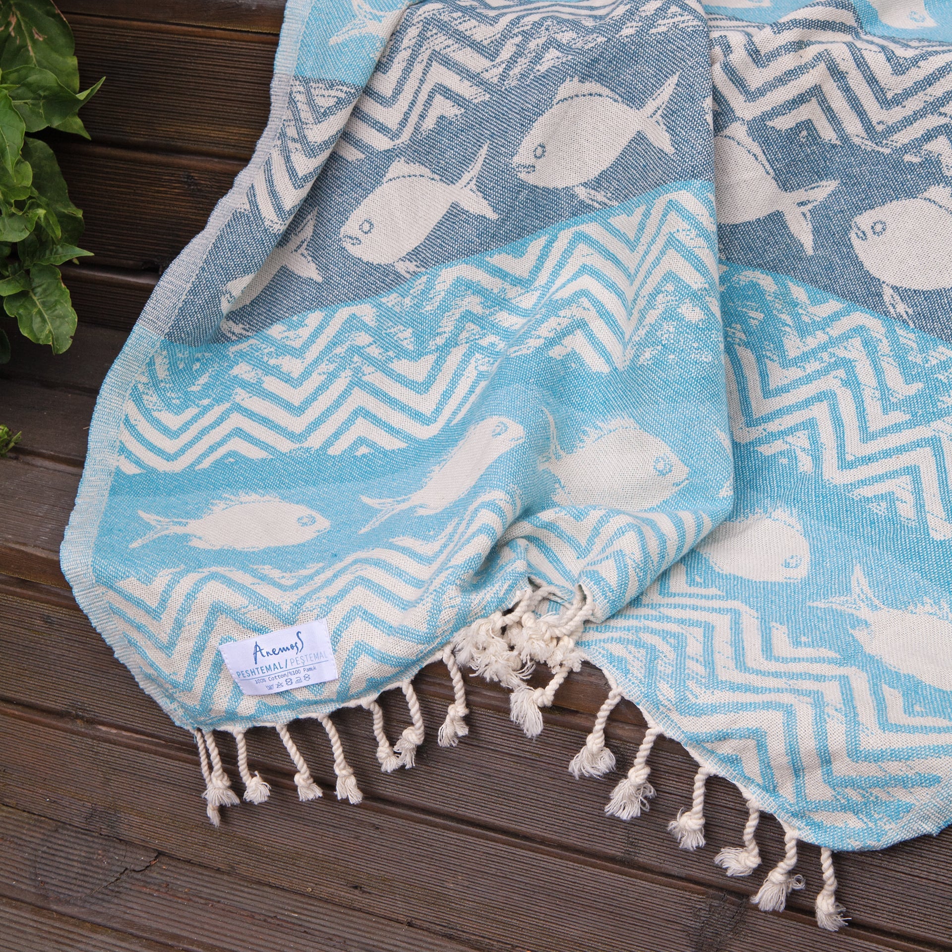 ÖZEL TASARIM PEŞTAMAL: AnemosS Balıklar Desenli Peştamal, denizcilik temasında hissedilen canlılığının yanında yumuşacık dokusu ile kalitenin izlerini taşıyor. Yaz temasını plaj stilinde de vurgulamak isteyenlere göre tasarlanmıştır. Yaz koleksiyonlarımızda bolca yer verdiğimiz yengeç, çapa, yelken ve balık desenleri ile zenginleşen peştamaller çok amaçlı kullanımlar için uygundur.