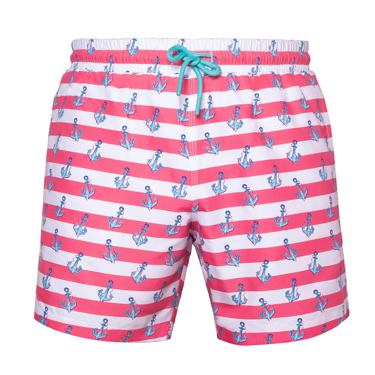 Anemoss’un kırmızı beyaz çizgili zemin üzerine tekrarlayan çapa desenleriyle tasarlanmış bu deniz şortu, denizcilik ruhunu ve yaz enerjisini bir araya getiriyor. Hafif, nefes alabilir ve hızlı kuruyan yapısı sayesinde gün boyu maksimum konfor sunar.