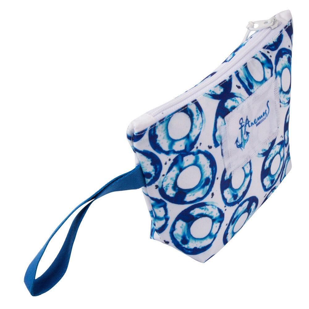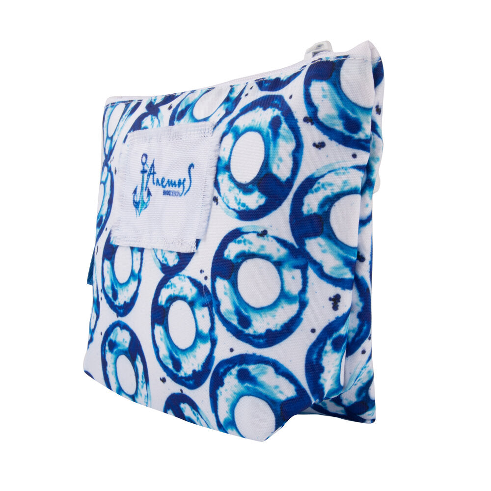 ÖZEL TASARIM MAKYAJ ÇANTASI: Makyaj çantalarını, sanatsal tasarımlarla bir araya getiren Anemoss, sanatçı Gamze Yalçın’ın eserlerindeki çizimleri, tasarımlarının üzerinde kullanarak orijinal bir makyaj çantasına sahip olmanızı sağlıyor. Koleksiyona ait diğer plaj çantası, plaj elbisesi gibi ürünler ile kombin yapıp, marin temasının hakimiyet altına aldığı mavi ve beyaz tonlarla stilinizde ferah bir etki oluşturabilirsiniz. Ege esintilerinden ilham alınarak oluşturulan koleksiyon tüm deniz tutkunları için tasarlanmıştır
