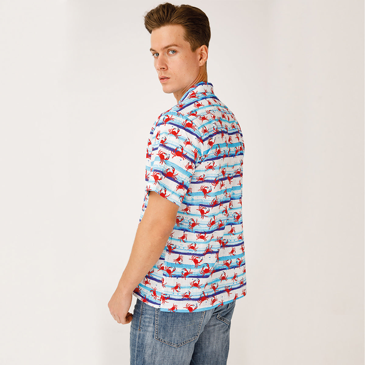 - Üzerinde dijital baskı tekniğiyle uygulanmış yengeç desenleri vardır.