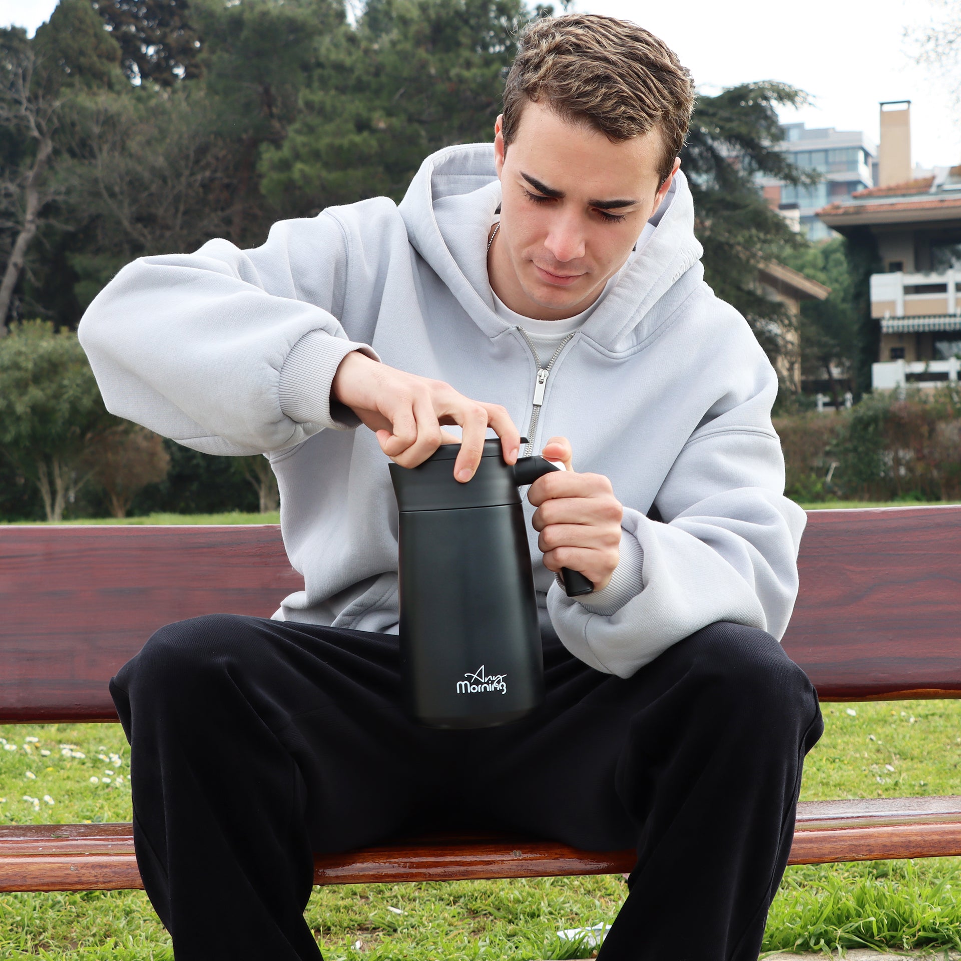 Any Morning 1.2 L Paslanmaz Çelik Termos, Sızdırmaz Kapaklı Geniş Ağızlı Siyah SI232250