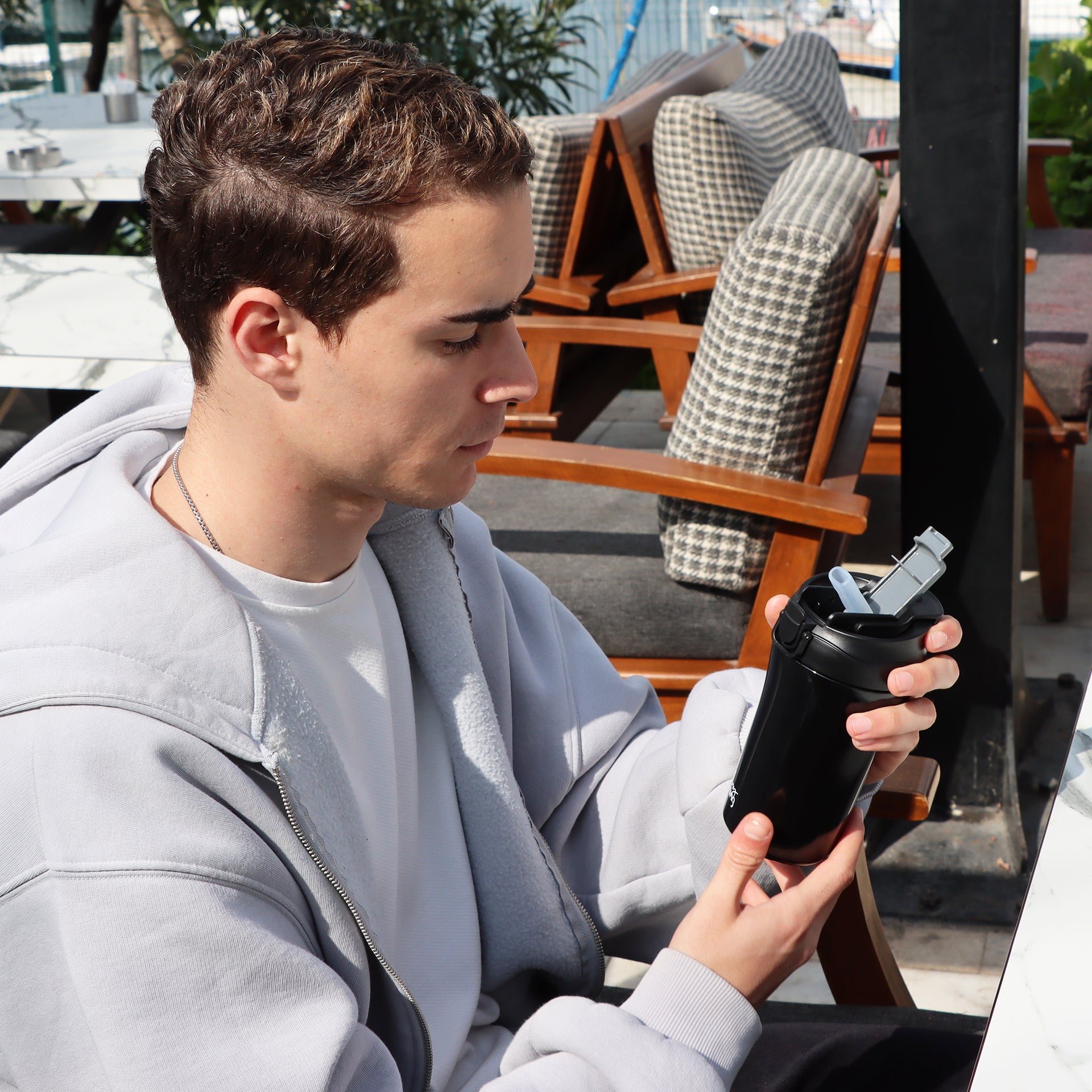 Any Morning 400 ml Paslanmaz Çelik Termos Mug, Çift İşlevli Sızdırmaz kapaklı, Siyah SI232021