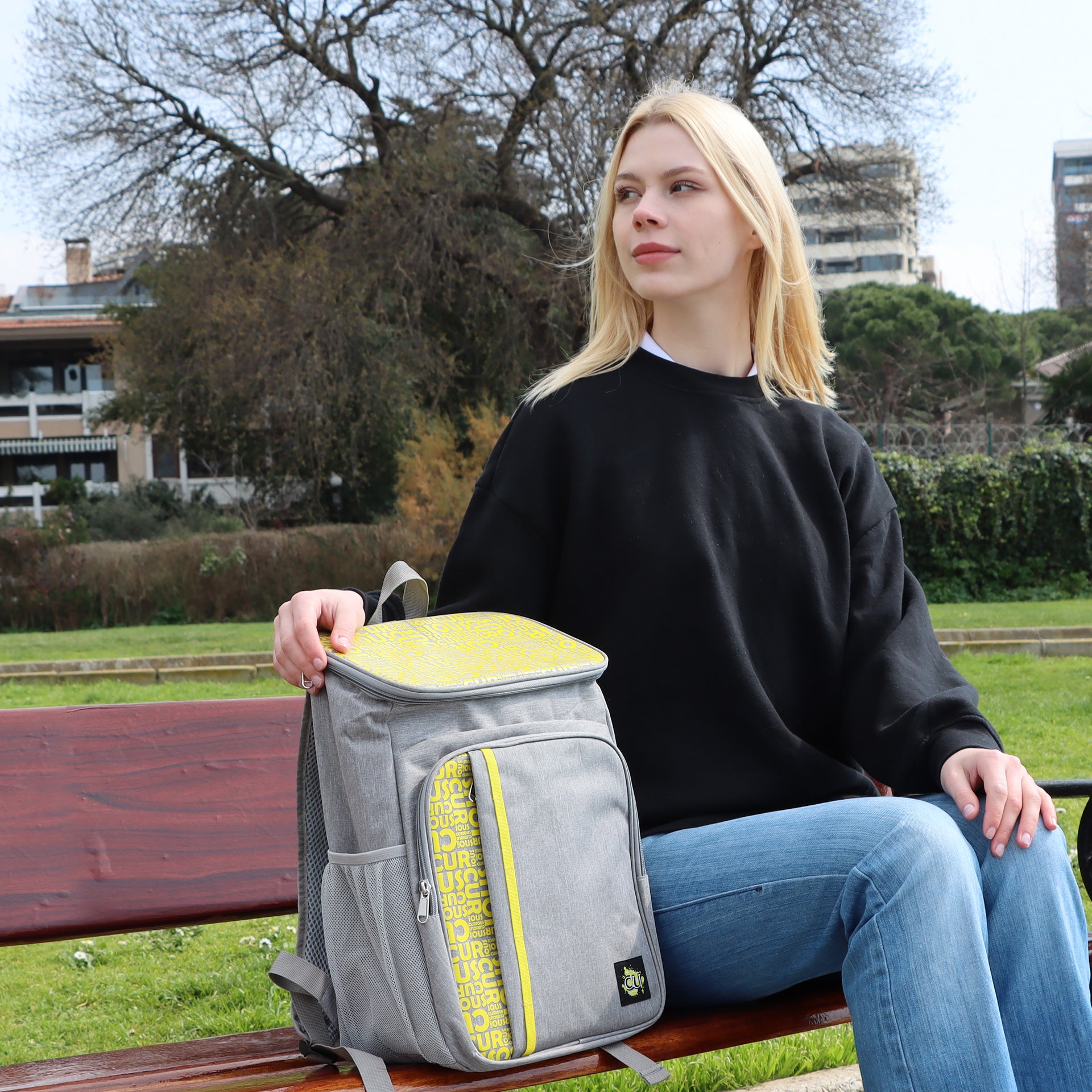 Biggdesign Moods Up ısı yalıtımlı sırt çantası, yiyecek ve içeceklerinizi 6 saate kadar sıcak veya soğuk muhafaza ederek her ortamda tazeliğini korumanıza yardımcı olur. Curious yazı tasarımıyla dikkat çeken bu termal çanta, özel yalıtım teknolojisi ile geliştirilmiş olup, içindeki gıdaları dış etkenlerden korur.