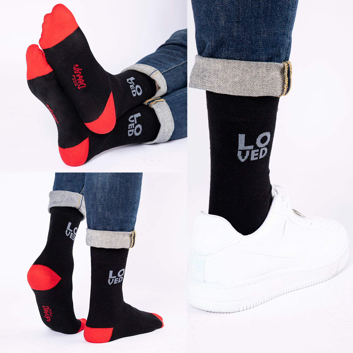 - Set; sarı, turuncu, mavi, yeşil, mor, pembe ve kırmızı olmak üzere 7 çift erkek çorabından oluşur.