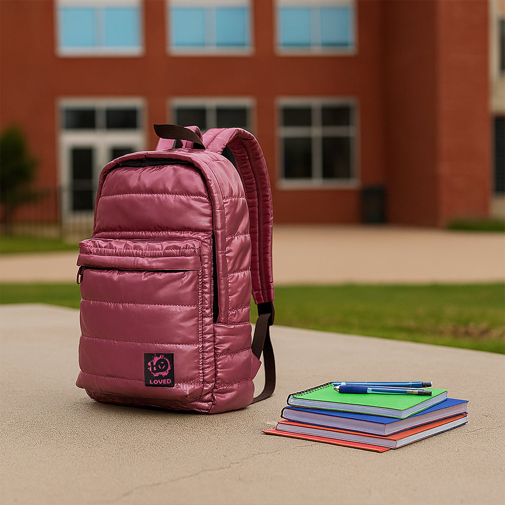 Biggdesign Moods Up Loved Kapitone Su Geçirmez Kumaşlı Okul ve Laptop Sırt Çantası Pembe