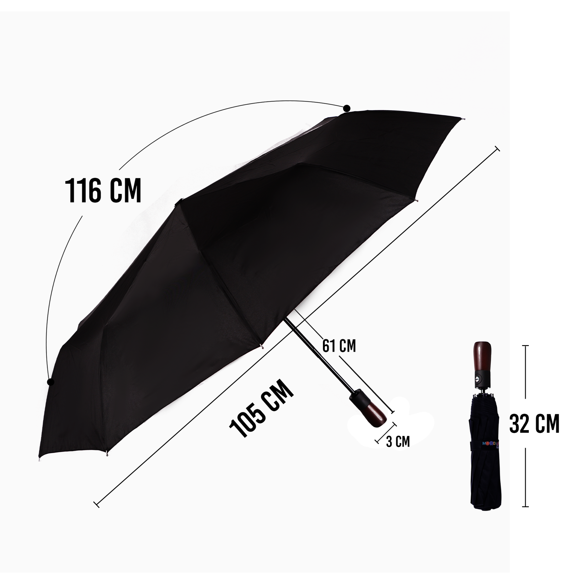 Biggdesign Moods Up Premium Ahşap Saplı Siyah Tam Otomatik Şemsiye, sağlam gövdesi ve şık tasarımı ile birlikte öne çıkar. 23" ( 58 cm ) x 10 panel ölçüsündeki oldukça geniş yüzeyi sayesinde yağmurlu günlerde yüksek koruma sağlayarak ıslanmalara karşı sizi korur. Tam otomatik açılma sistemi ve kapanma mekanizması kullanım açısından konfor ve pratiklik sağlar.