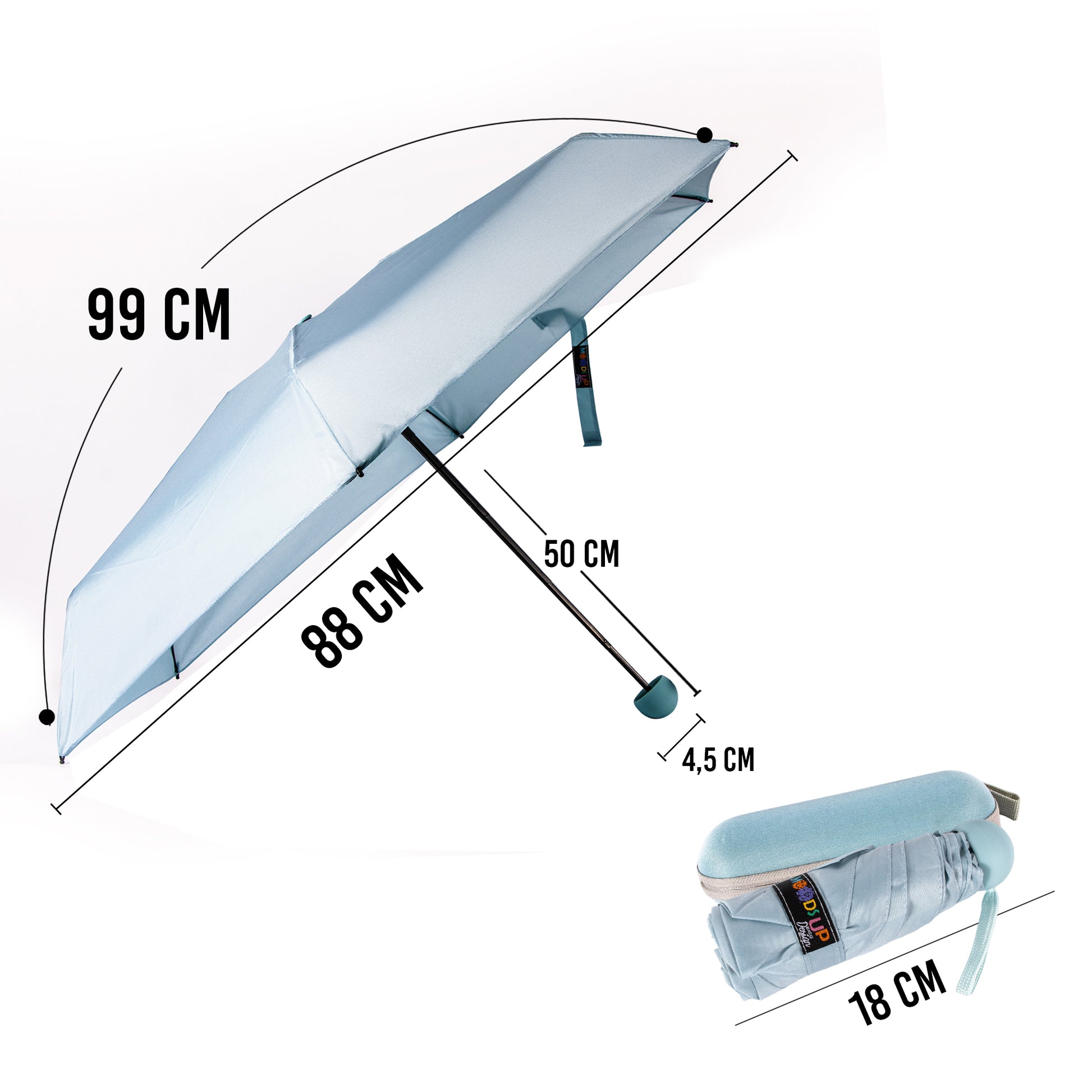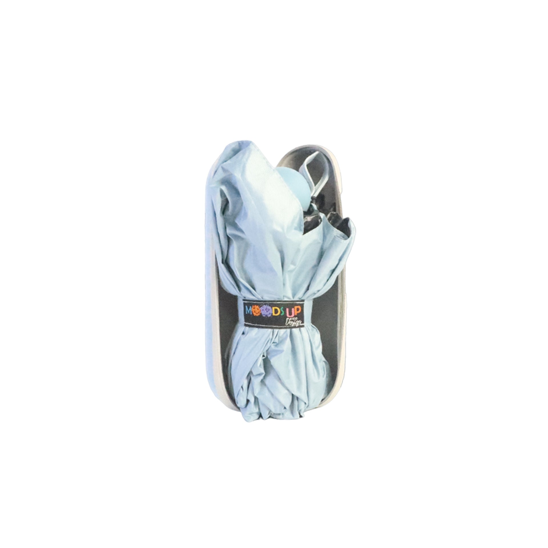Biggdesign Moods Up Turkuaz Mini Şemsiye, manuel açılıp kapanan mekanizması ve kompakt tasarımıyla pratik bir kullanım sunar. Kapsül formundaki kumaş koruma kutusuyla şık ve taşınabilir bir aksesuar olarak öne çıkar.