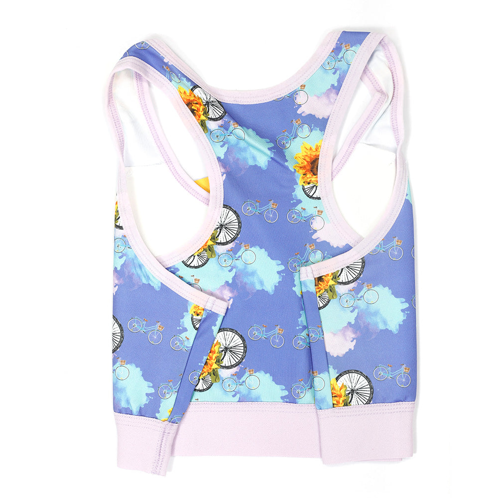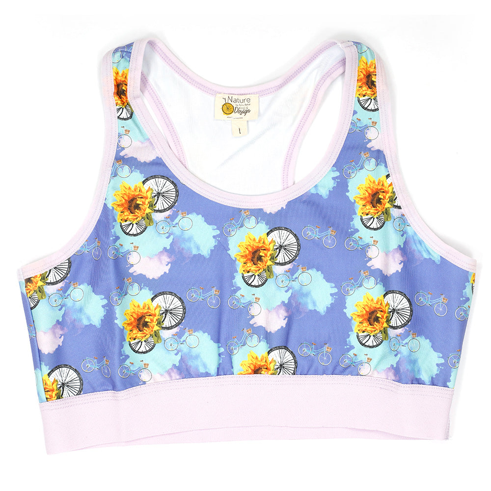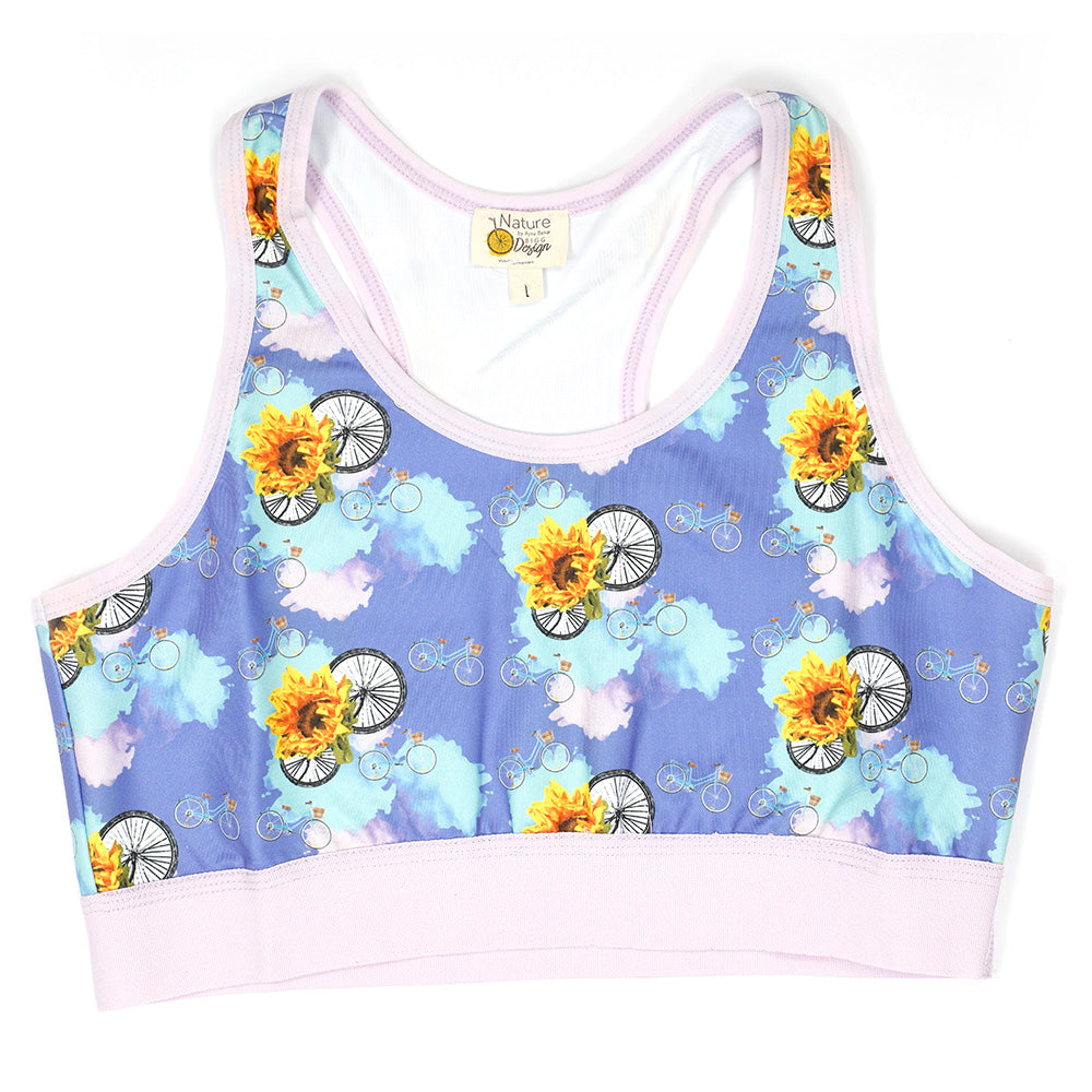 Doğadan ve sağlıklı yaşamda hareketin öneminden aldığı ilhamla, Sanatçı Aysu Bekar tarafından tasarlanan büstiyer, modern tasarımıyla dikkat çekiyor. Canlı renklerle tasarlanan sporcu sutyeni ruhunuza enerji verecek. Hareket etmenin en eğlenceli yollarından biri olan bisiklet kullanımını teşvik eden bisiklet desenleri spor şıklığınızın parçası yapan renkli sporcu sutyeni, rahatlığı sayesinde sadece yoga yaparken değil spor yaparken de kullanmak için uygun.