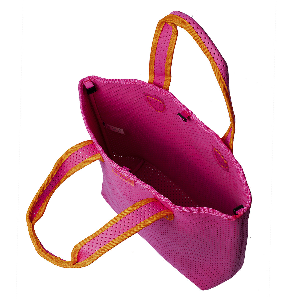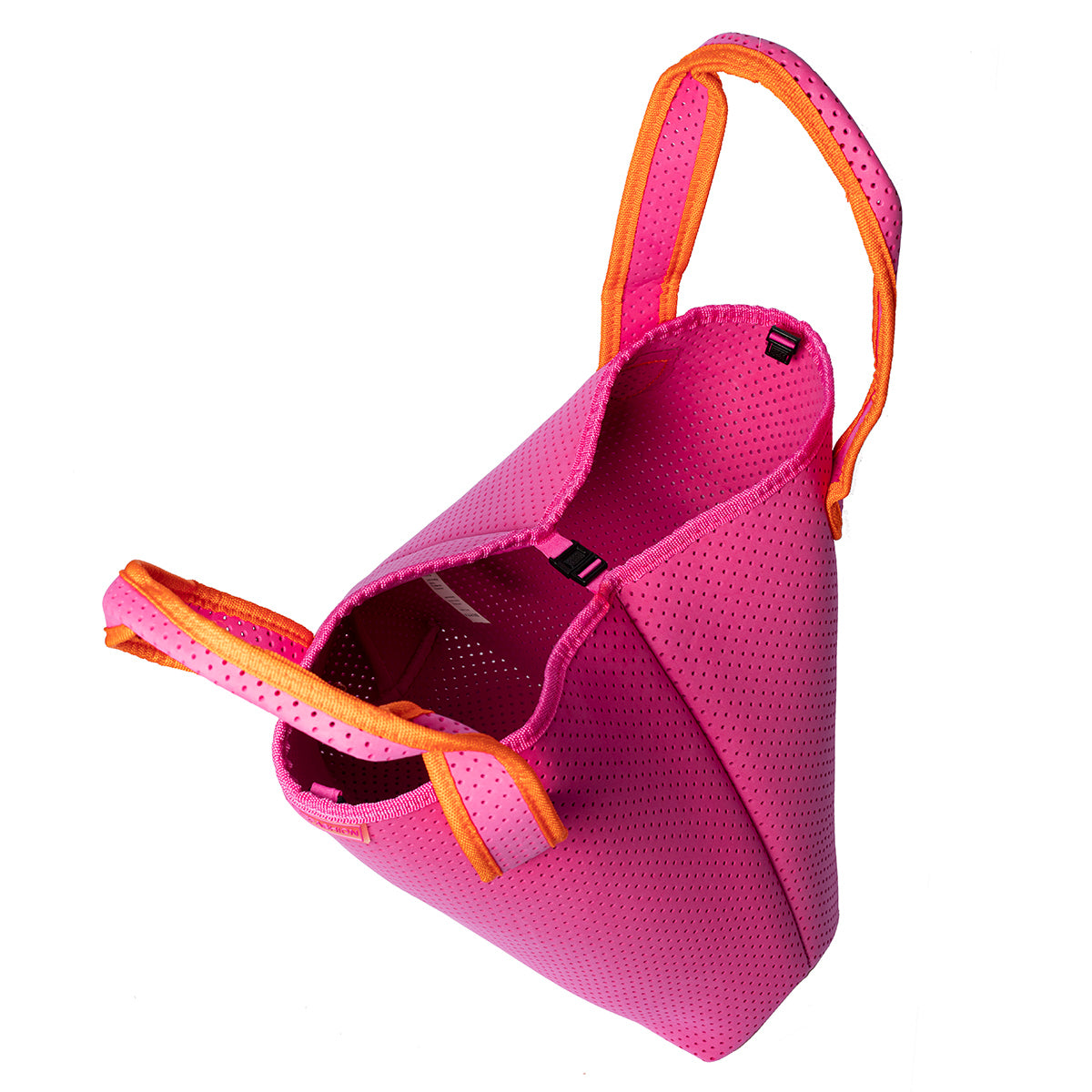 KADIN PLAJ ÇANTASI: Doğa ve çevre dostu, geri dönüşüme uygun eva kumaşla üretilen Eva Plaj Çantası, sağlığa uygun, bakteri üretmeyen, ısı geçirmez, esnek ve çok hafif bir yapıya sahiptir. 45x33x11 cm ölçülerindedir. Delikli yüzeyi ile farklı bir tasarıma sahiptir. Bu yumuşak kol çantası 4 adet klipsi ile 2 farklı formda hem düz hem büzgülü kullanılabilir. Modası geçmeyen modeli, pembe rengi ve turuncu şerit detayları stilinize şık ve enerjik bir etki verir. Her türlü baskıya uygun olan bu çantaya istediğiniz tasarımı yaptırarak kendi özel stilinizi yaratabilirsiniz