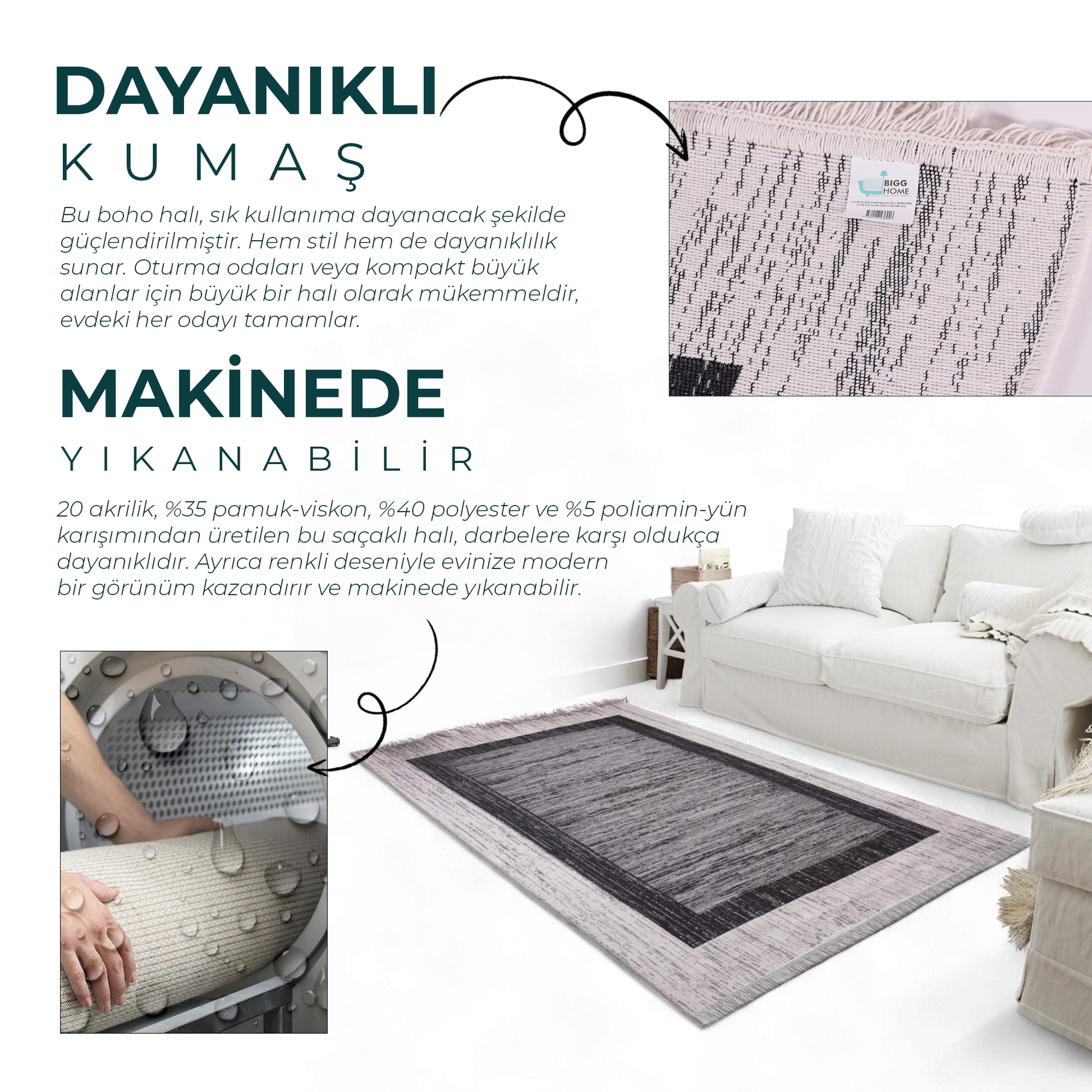 Bigghome Çift Taraflı Kilim, Makinede Yıkanabilir, Modern Desenli, 120*180 cm, SAF3B