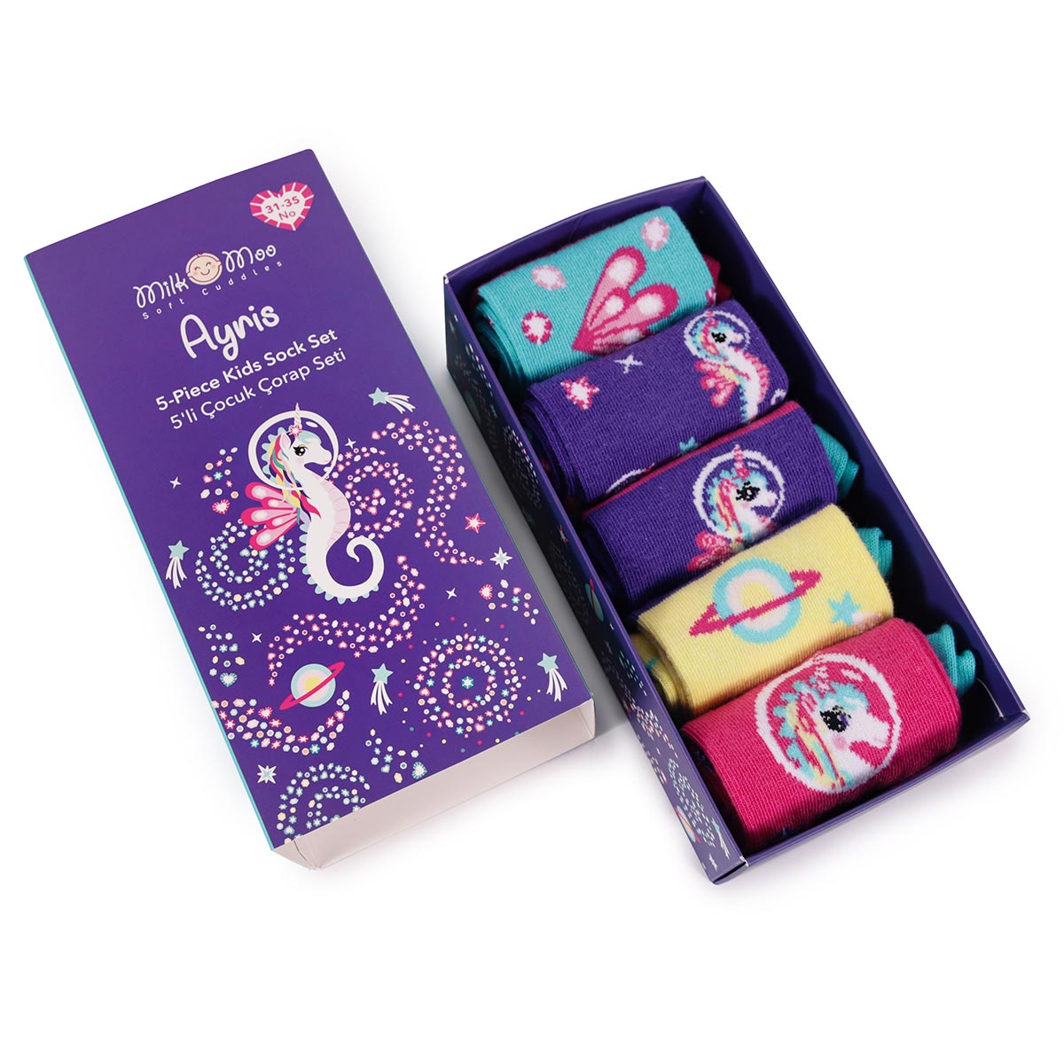 - Ayris Teması: Ayris’in rengarenk ve sevimli desenleri, her çoraba özel bir hikaye katıyor.