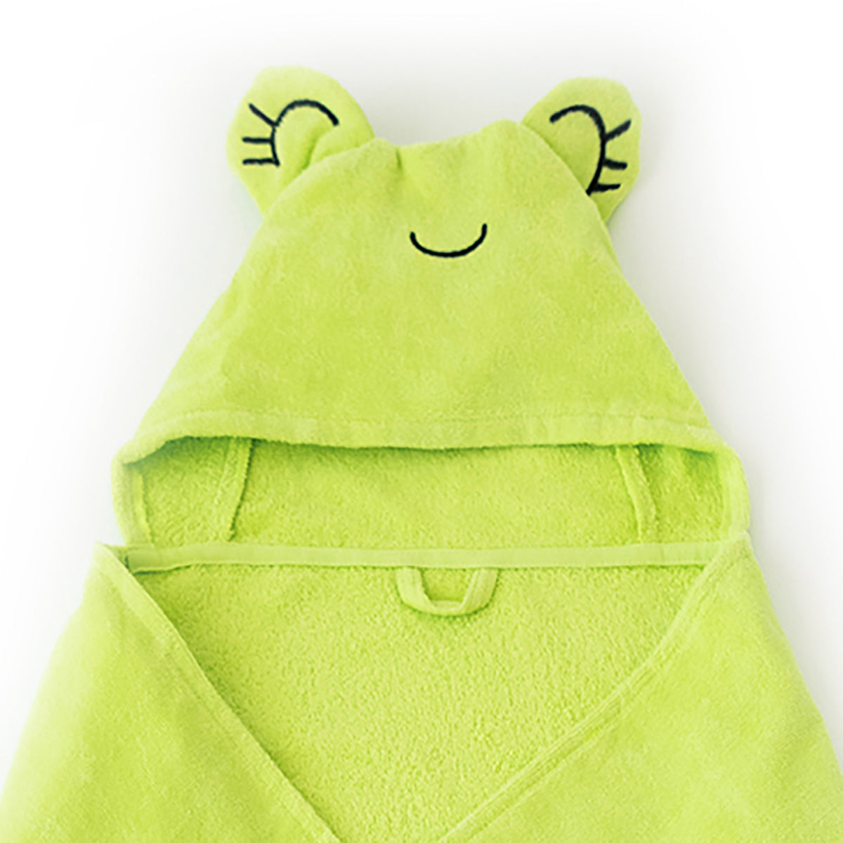 Milk&Moo Çaça Kurbağa Kadife Kundak Havlu, %100 Pamuk, Kapüşonlu, 0-2 Yaş, Hızlı Emici, 70x120 cm