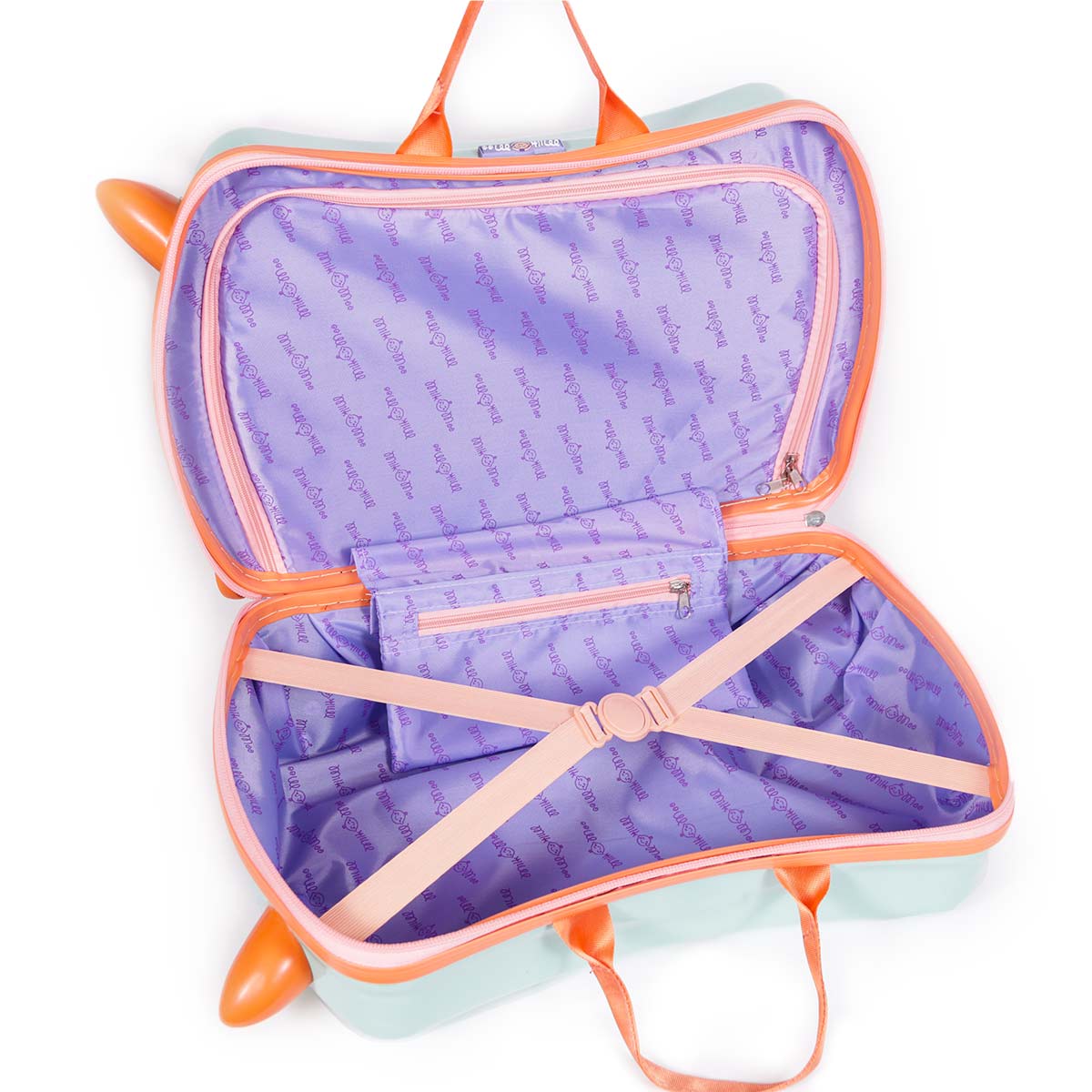 GENİŞ İÇ HACİM: Binilebilir çocuk valizi, içinde çocuğunuzun seyahat sırasında ihtiyaç duyabileceği tüm eşyalarını saklayabileceği geniş bir iç hacme sahiptir. Oyuncakları, kıyafetleri ve diğer kişisel eşyaları rahatlıkla yerleştirebilirsiniz. İçinde bulunan fermuarlı cebi sayesinde küçük eşyalarını karışmadan taşıyabilir.