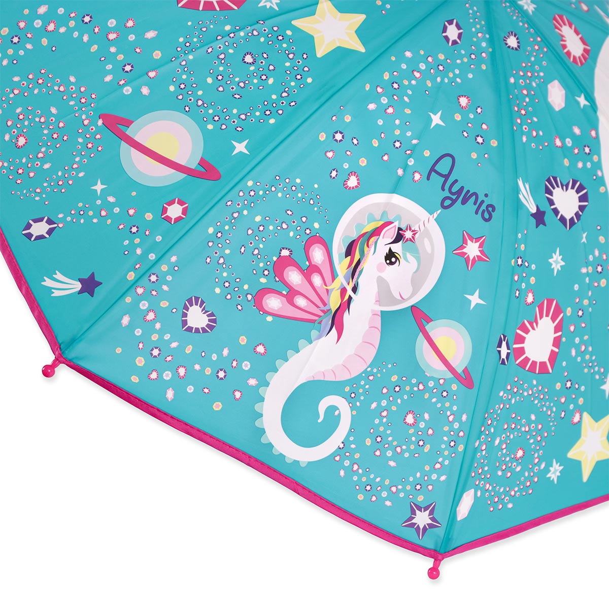 Milkyway galaksisinin Kristal gezegeninde yaşayan ve çok üretiken olan denizatı Ayris’in dünyasına adım atın. Ayris desenli şemsiyemizle çocuklarınız yağmurlu günlerin tadını çıkarsın.