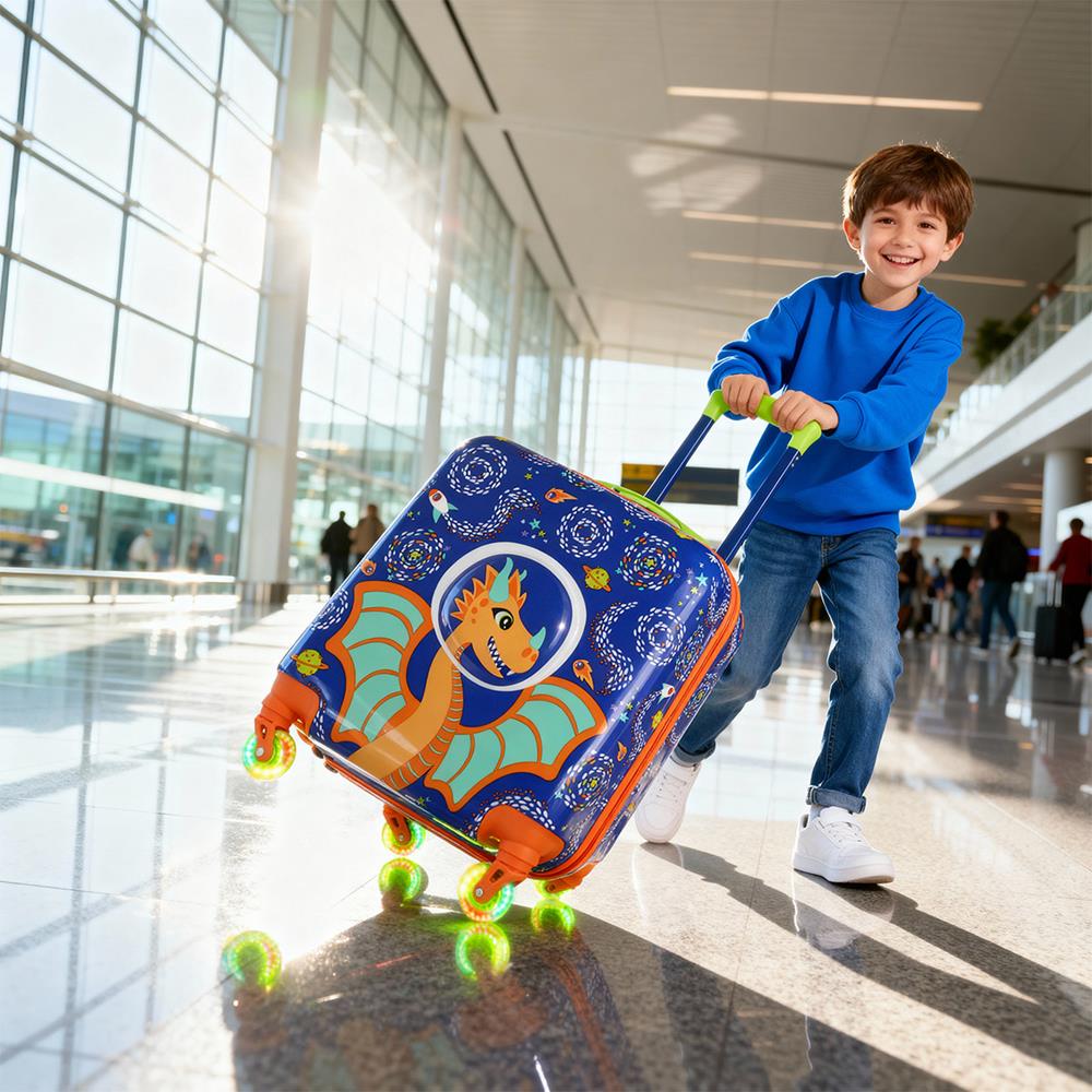 Milk&Moo Renkli Işıklı Tekerlekli Çekçekli Çocuk Valiz 3D Ponix Tasarımlı