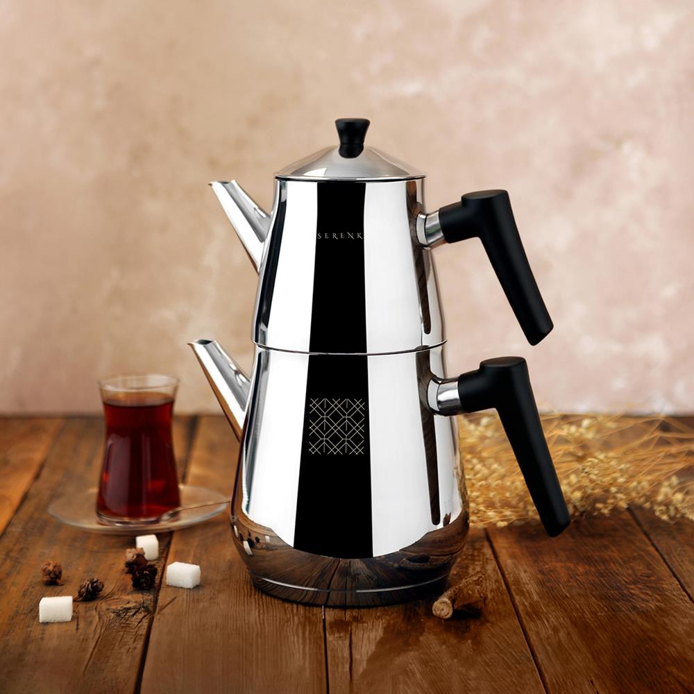 Serenk Definition Çaydanlık, 18/10 Paslanmaz Çelik, 1 L Demlik ve 2 L Alt Hazne, İndüksiyon Uyumlu