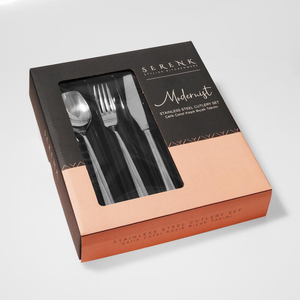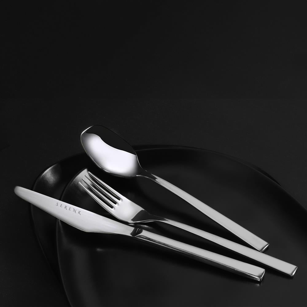 Serenk Milano Çelik Çatal Kaşık Bıçak Takımı 18 Parça: 18 parçalık premium çatal kaşık bıçak seti, premium kalite 18/10 Cr-Ni paslanmaz çelik malzemeden üretilmiştir ve sofralarınıza şıklık katar.
