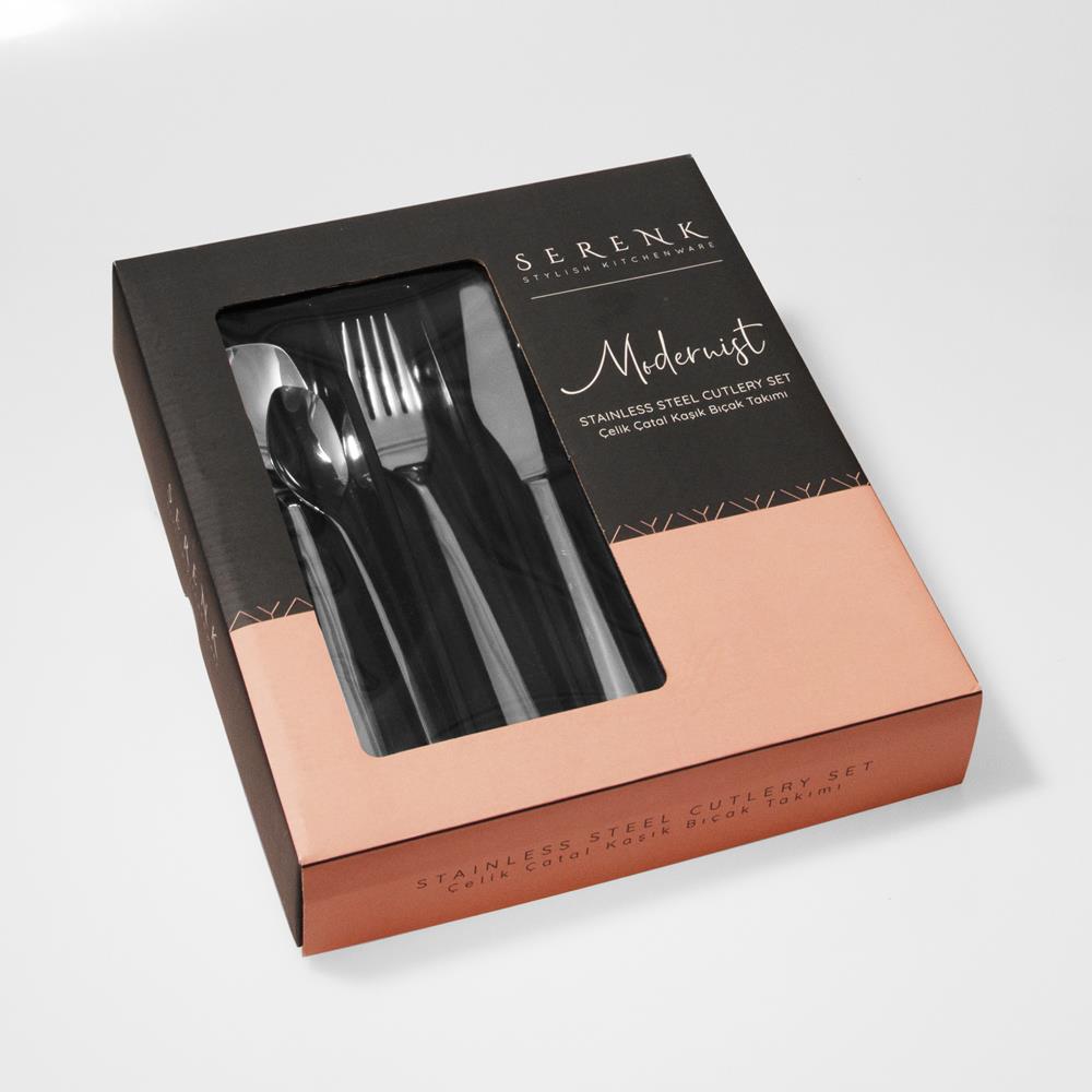 Serenk Milano Çelik Çatal Kaşık Bıçak Takımı 24 Parça: 24 parçalık premium çatal kaşık bıçak seti, premium kalite 18/10 Cr-Ni paslanmaz çelik malzemeden üretilmiştir ve sofralarınıza şıklık katar.