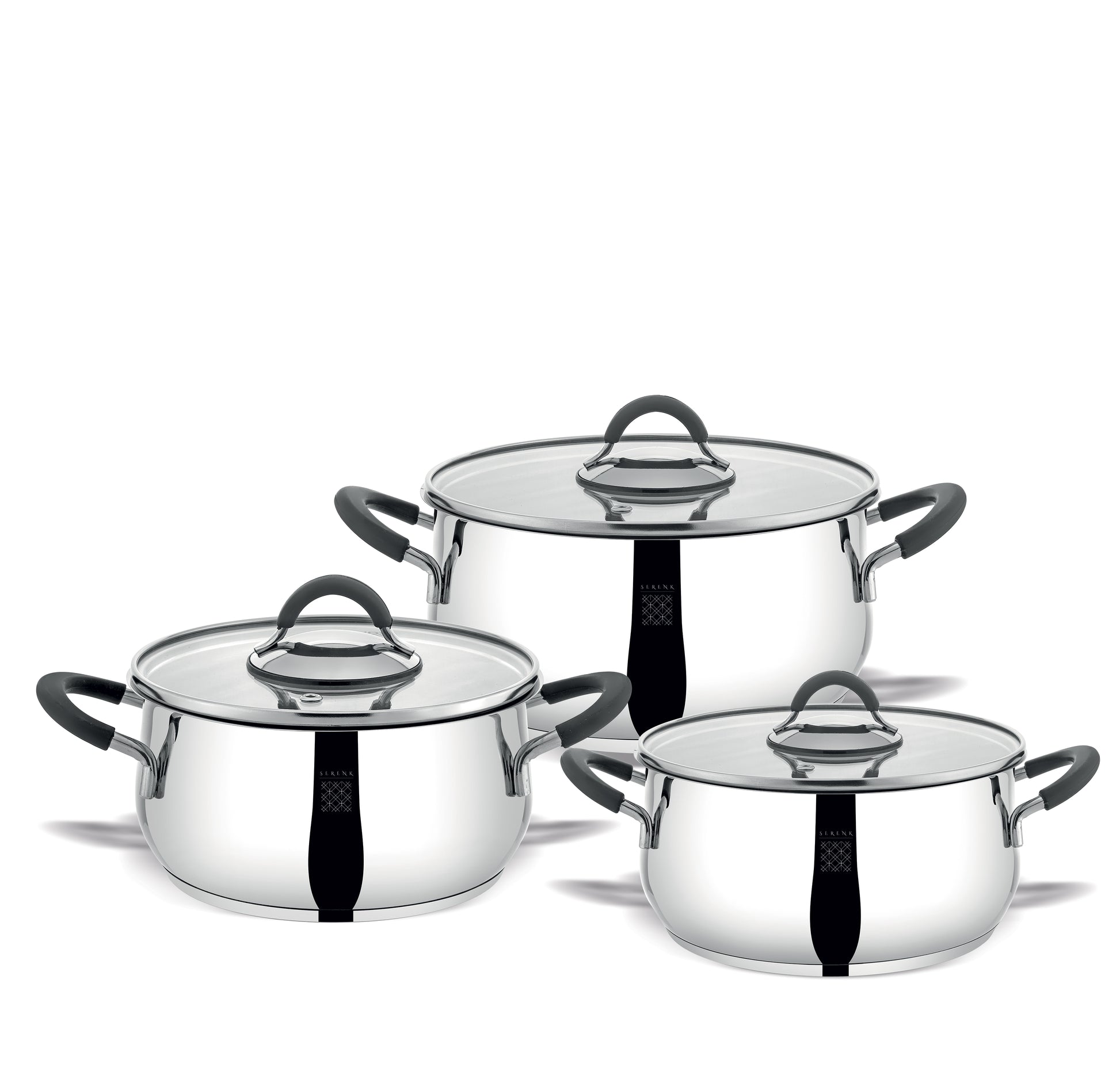 Serenk Modernist 6 Parça Çelik Tencere Seti, 18/10 Paslanmaz Çelik, 18-22-26 cm